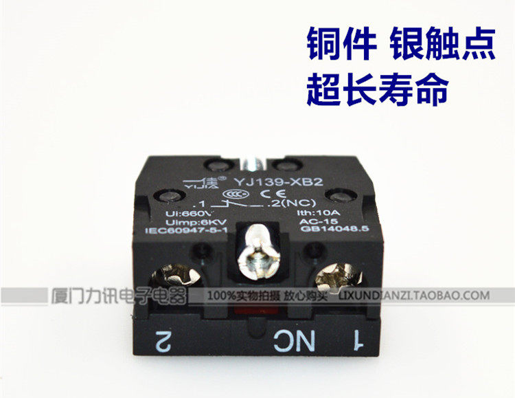 Shanghai Yijia button contact point normally closed auxiliary contact point YJ139-XB2 (ZB-2BE102C) silver contact point