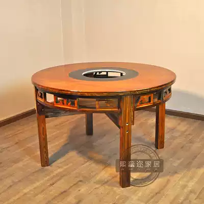 Factory custom marble hot pot table and chair battery stove liquefied gas gas stove solid wood cabinet hot pot Round Table