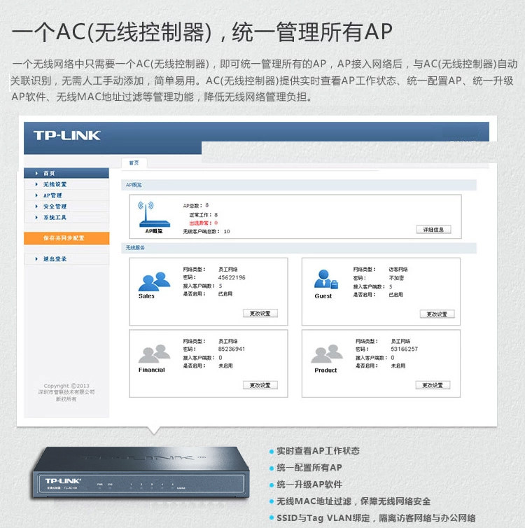 TP-LINK TL-AC100 wireless AC controller panel ceiling AP Centralized Manager seamless roaming