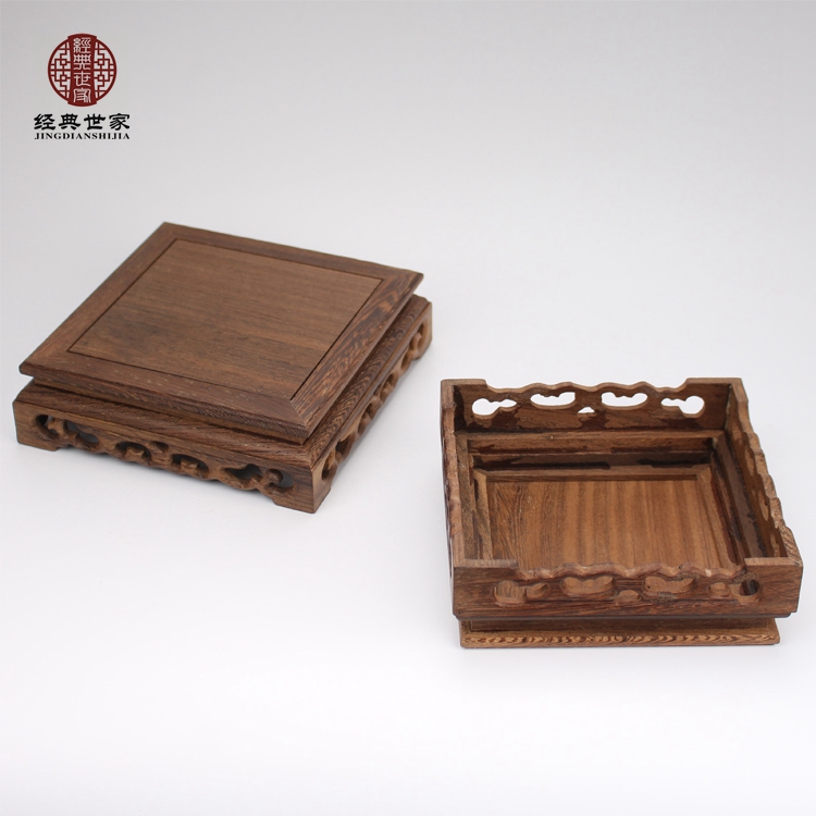 Chicken Wings Wood Square Base Custom Solid Wood Engraving Home Residence Ornament Buddha Vase Chite Handicraft Swing and Wooden Care