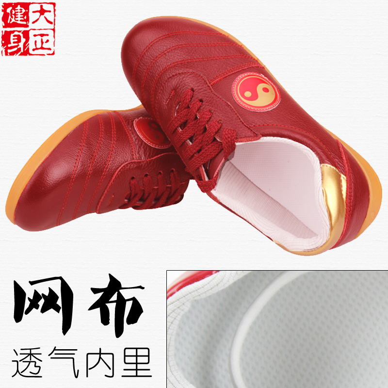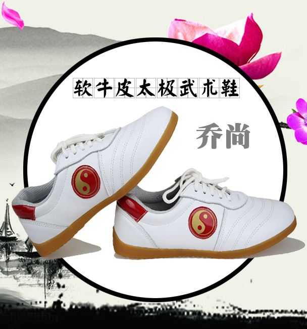 Qiao Shang leather tai chi shoes spring men's and women's soft-soled beef tendon outsole soft cowhide soft power sneakers Martial arts practice shoes