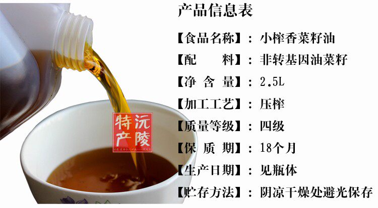 Pure rapeseed oil edible oil Hunan specialty Huaihua Yuanling non-GMO Xiangxi farmers self-pressed pressed rapeseed oil