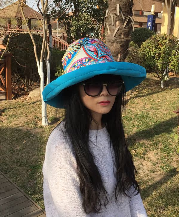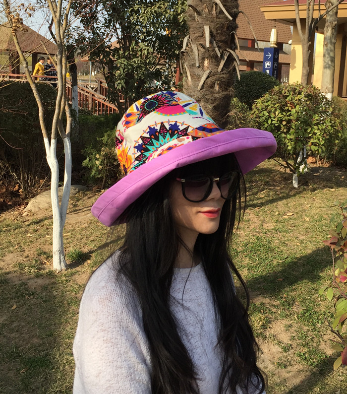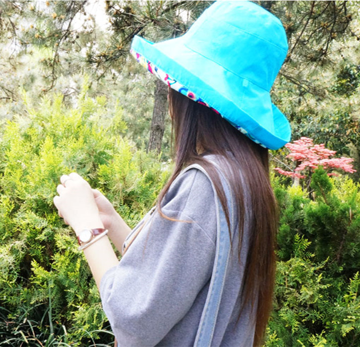 New hat Summer fisherman hat pure cotton sunhat lady Korean version sunscreen beach hat double sided can fold