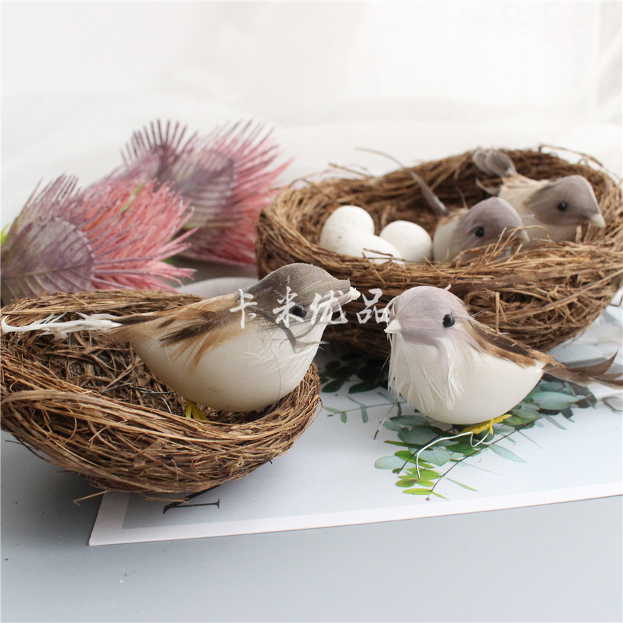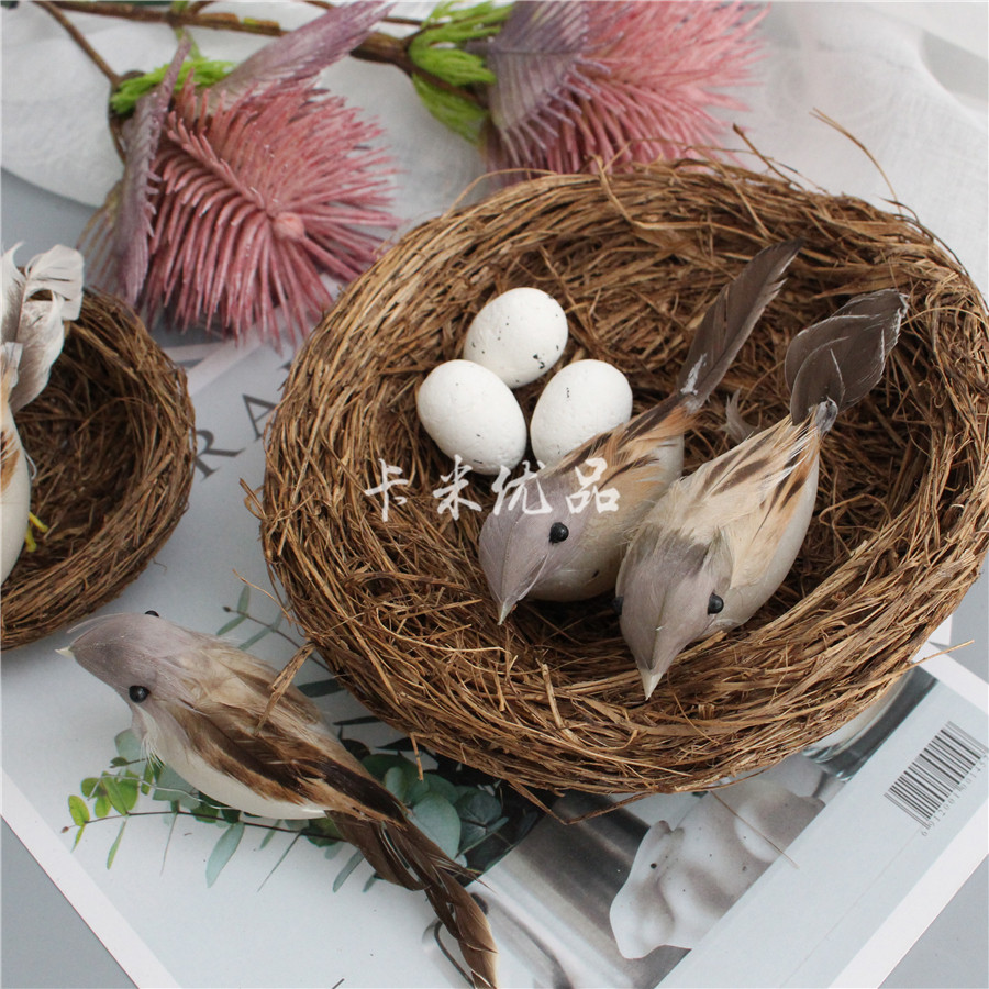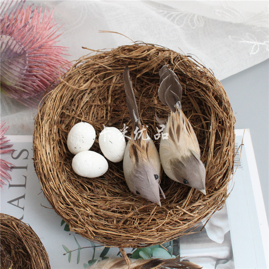 zakka original seaweed hand-woven weed bird's nest bird's nest photo props simulated feathered bird sparrow bird