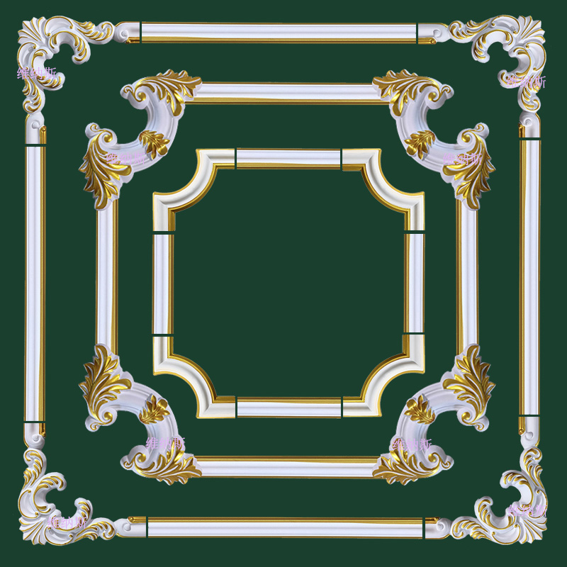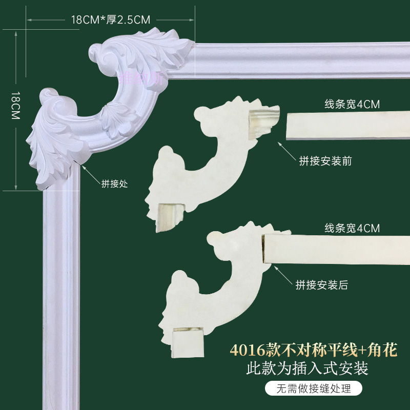 PU Flat Line Corner Floral Eurostyle Suspended Ceiling Decoration Background Wall Frame Line Bend Corner Flower Imitation Plaster Thread Carved Corner Flowers