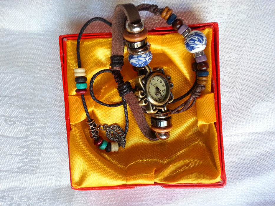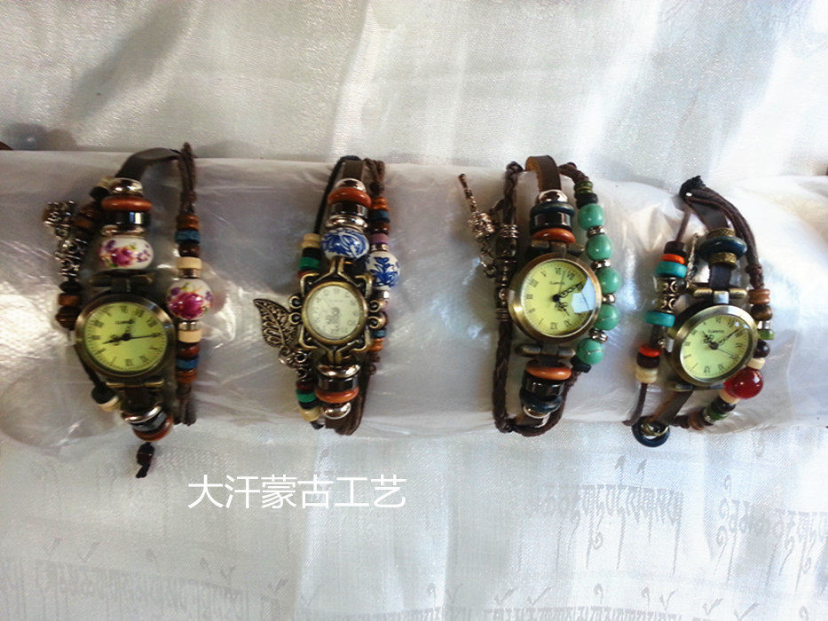 Cow Leather Watch Mongolian Ethnic Tibetan Handicraft Retro National Wind Male Students Bracelet Tourist Souvenirs-Taobao