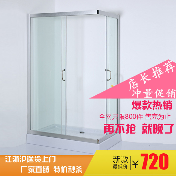 Simple shower room L type moving door screen partition glass door special price bathroom rectangular overall bath with bottom basin-Taobao