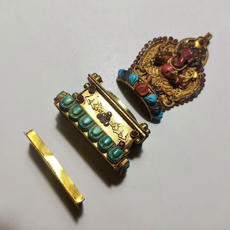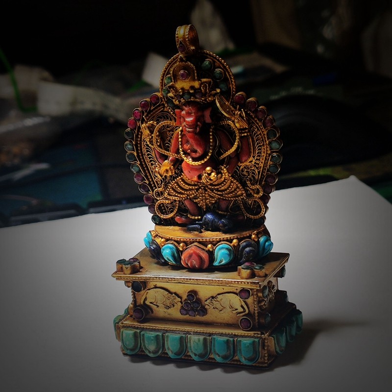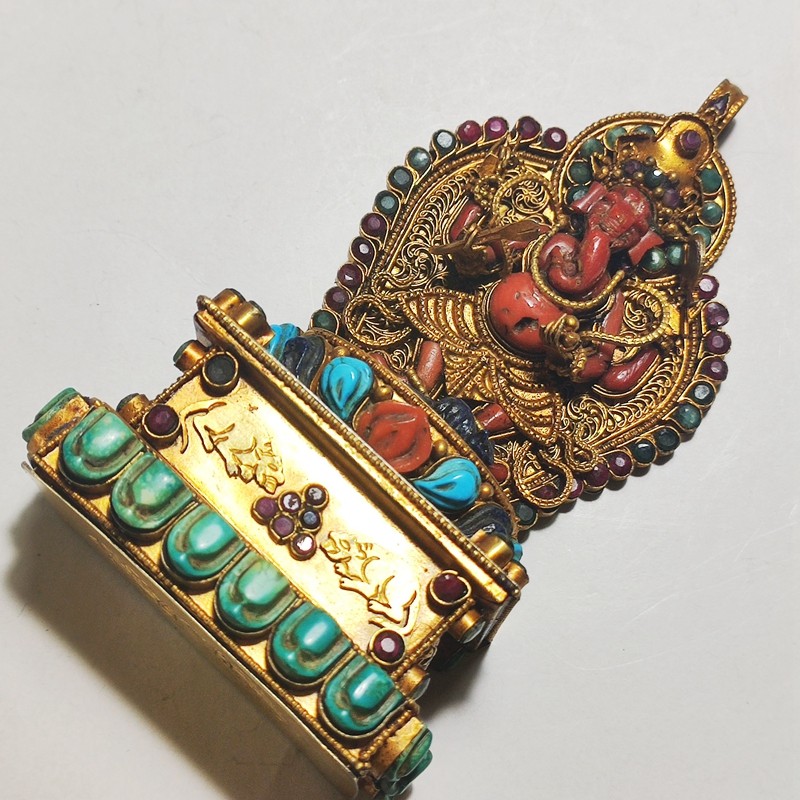 Tibetan Buddhist sterling silver gilded set red gemstone elephant trunk Buddha shrine home ornaments Tibetan style spot