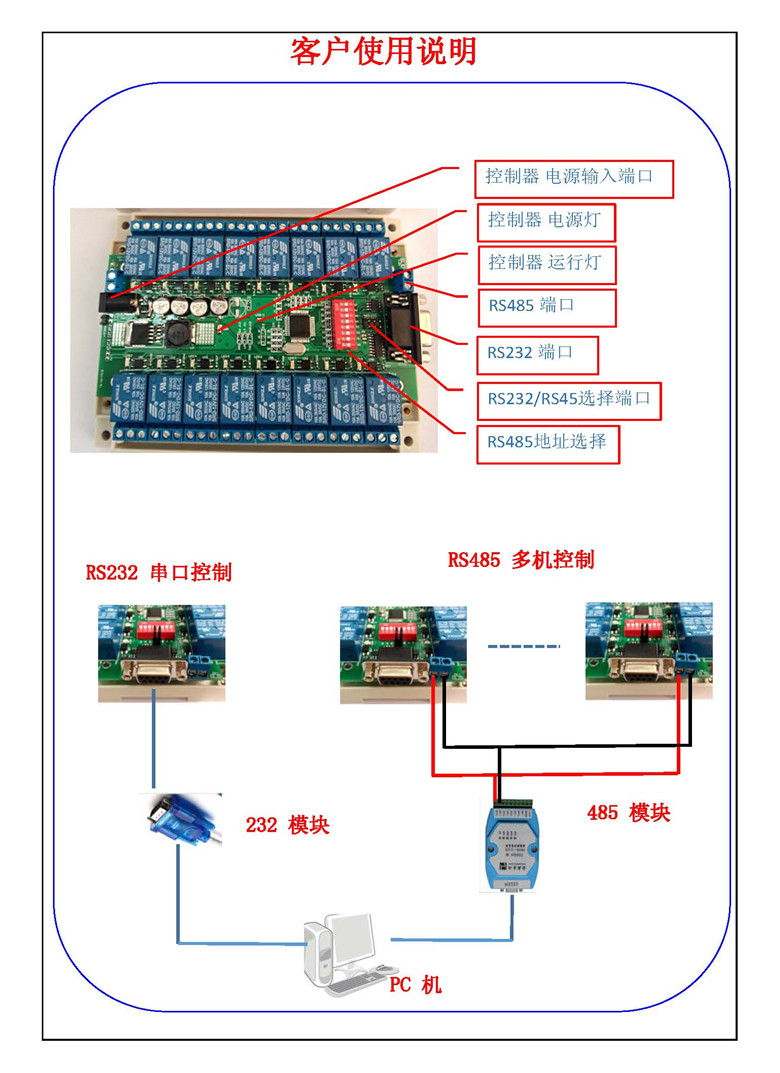 RS232 485 serial port relay control board (MODBUS version) computer control relay module 16 channels
