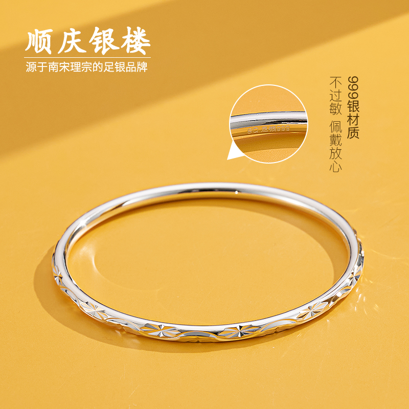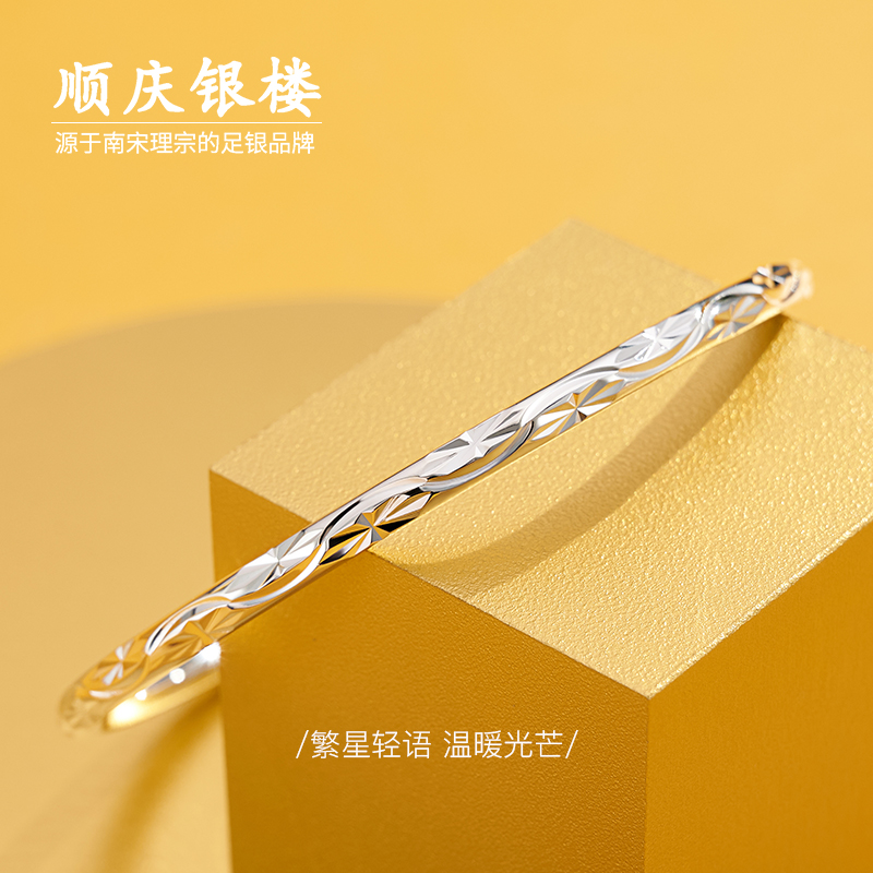 Shun qing silver floor S999 full silver stars round ring fashion bracelet sterling silver female jewelry INS wind send girlfriend birthday