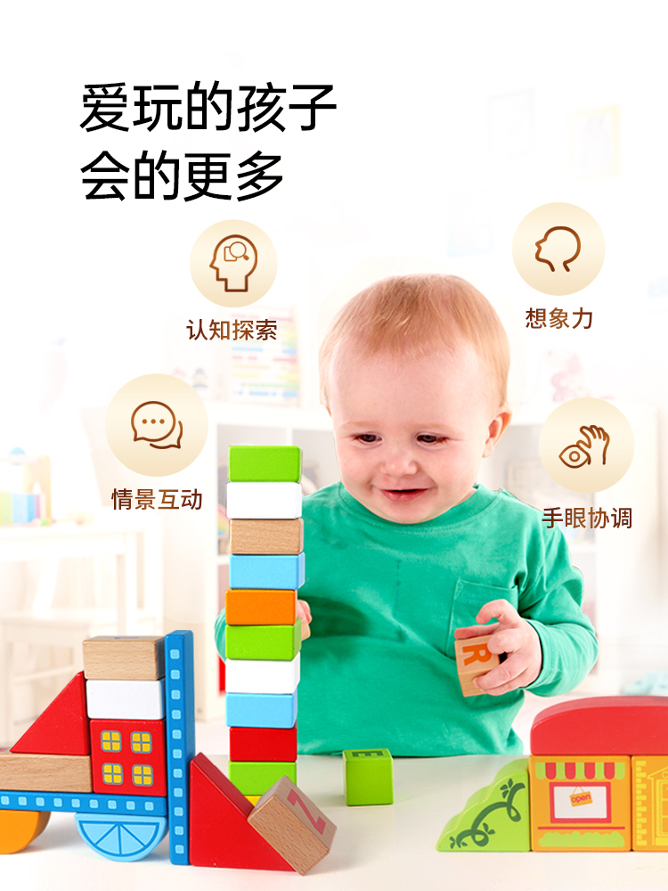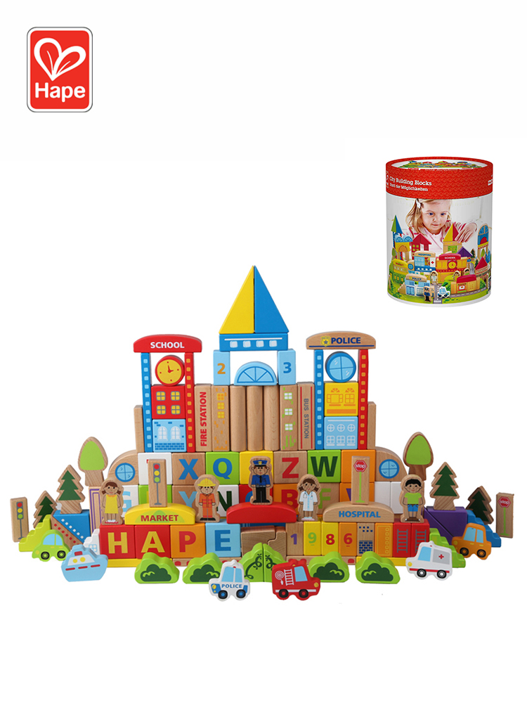 Hape125 Blocks Urban Scenario Building Blocks Children of children Baby Puzzle Action Brain Assembly Spelling Toy Male Girl