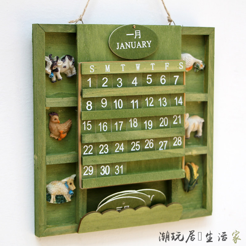 Grocery log Green small calendar wooded manual Winner wall Wall-mounted Calendar Wall Wall-mounted Decorations CREATIVE