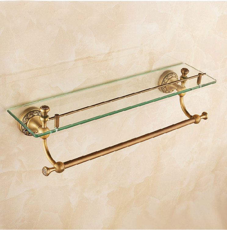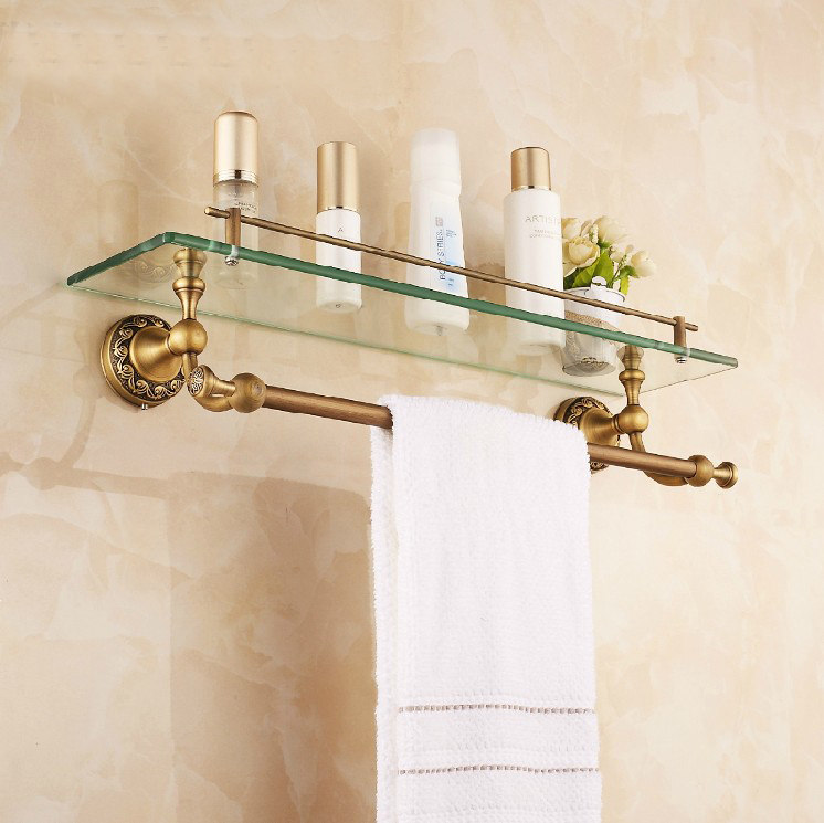 Bronze antique bathroom shelve Wall-mounted Toilet Cosmetic Racks makeup Desk Bathroom Mirror Front Racks with pole-Taobao