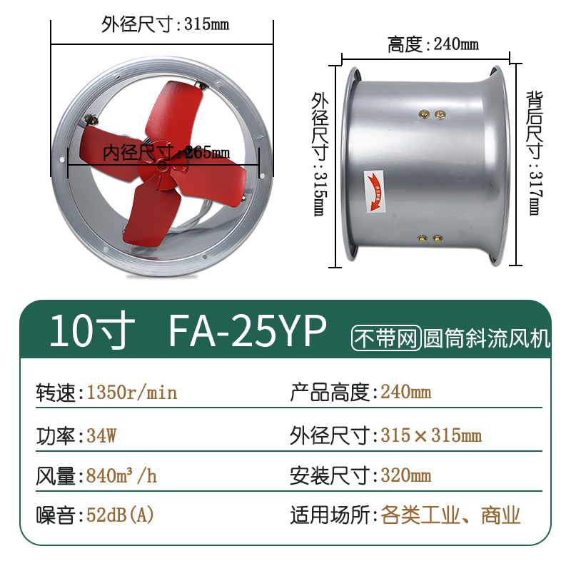 Gold antelope exhaust fan 10 inch cylinder axial flow fan dining room Kitchen Round Hole Powerful exhaust fan FA-25YP
