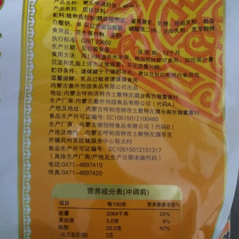 Inner Mongolia milk tea powder salty Mongolian flavor milk tea plug Wai Yiyuan solid beverage breakfast tea brewed beverage 400g