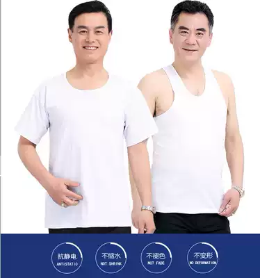 2 pieces of Shanghai chrysanthemum brand men's soil 42 pieces 60 pieces of cotton pure cotton white round neck old man undershirt sleeve T-shirt vest