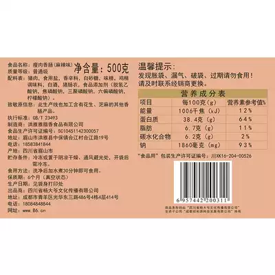 Uncle Yang smoked lean meat spicy sausage 500g Sichuan Sichuan sausage Farmer's homemade specialty bacon bacon