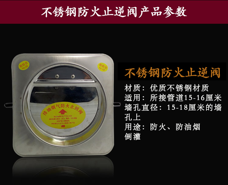 Stainless steel fire check valve kitchen flue fire check valve anti-smell valve range hood check valve anti-smoke treasure