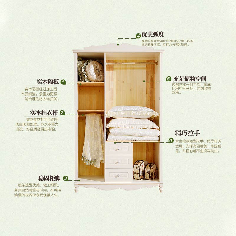 European pastoral wardrobe Simple modern home bedroom Korean multi-function drawer storage clothes overall cabinet storage is simple