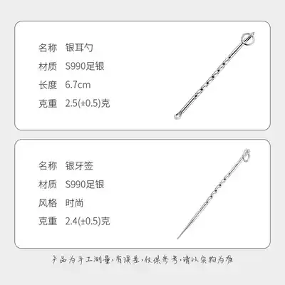 Shunqing silver building S990 sterling silver ear spoon pure hand-made silver ear pick ear spoon square portable with silver toothpick fruit fork