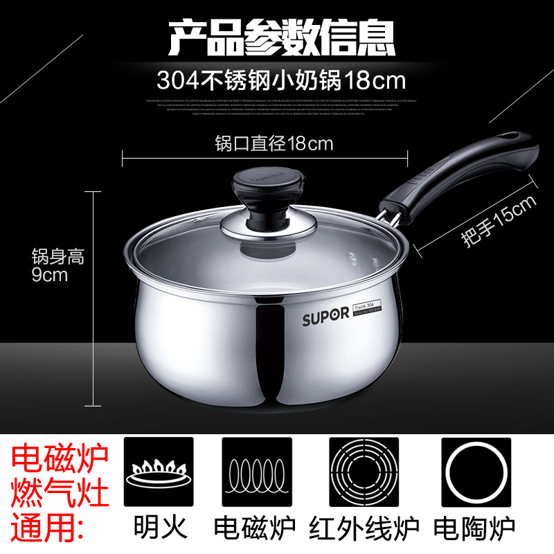 Suber milk pot 304 stainless steel baby food small milk pot thick instant noodle pot gas stove induction cooker universal