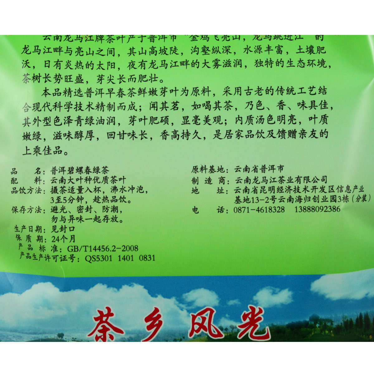 (2 bags)Longmajiang Puer Biluochun 460g Green Tea