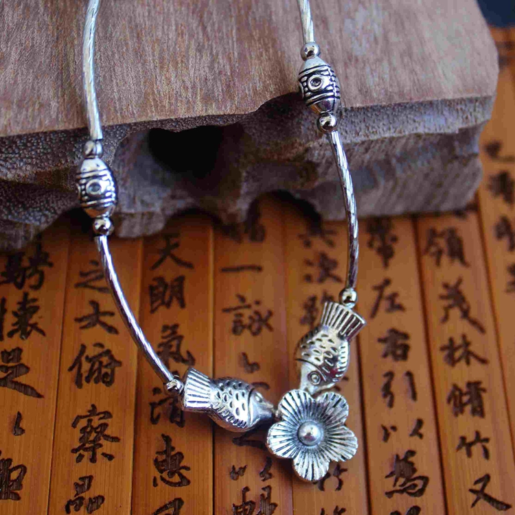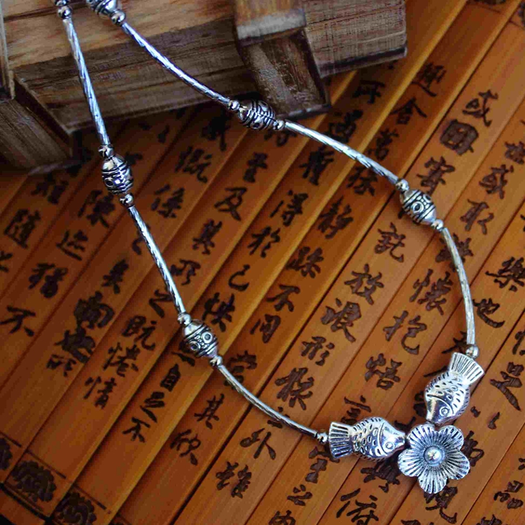 Manufacturer direct sales new retro Tibetan silver short money chain ornament ethnic wind flowers kissing fish lock bone chain XL115