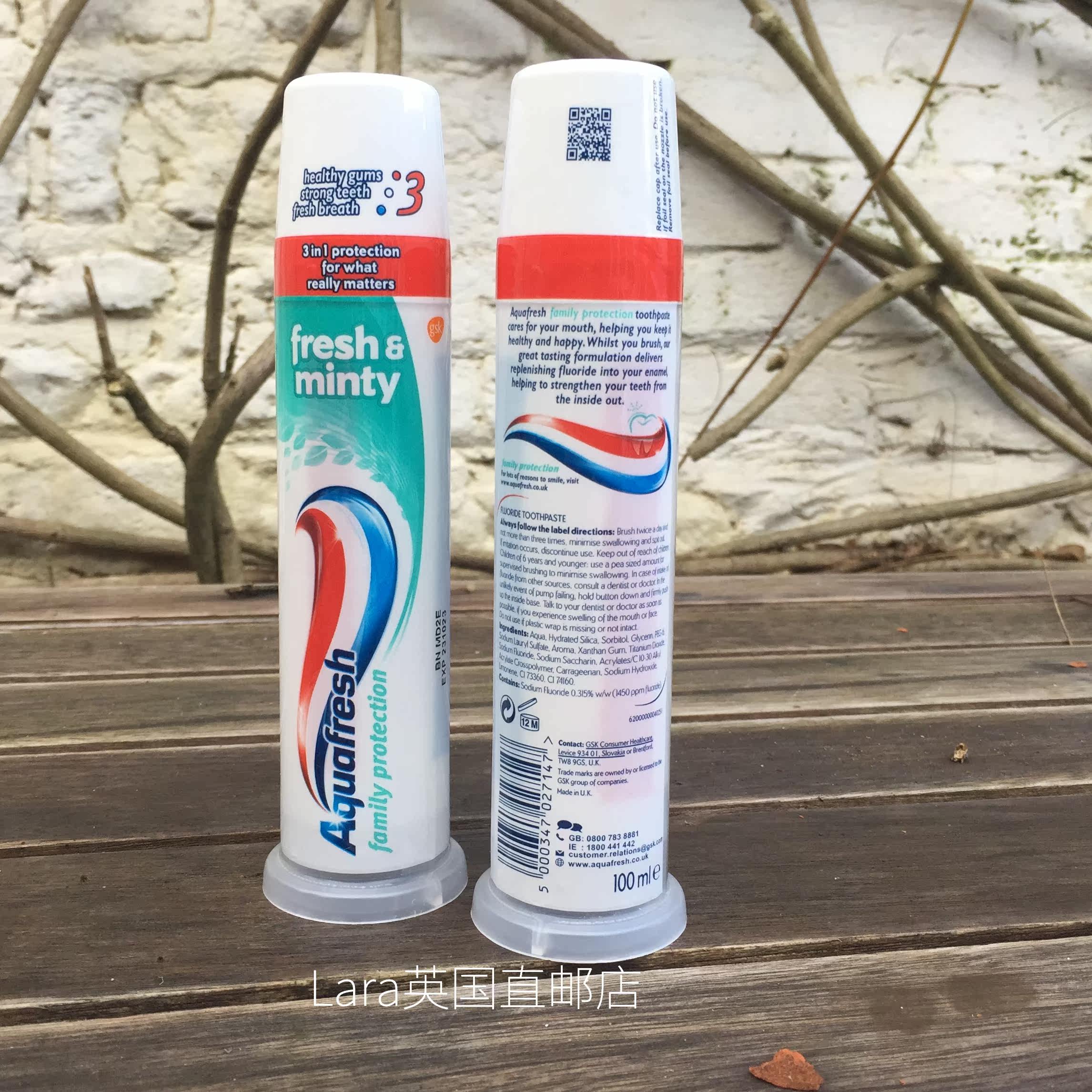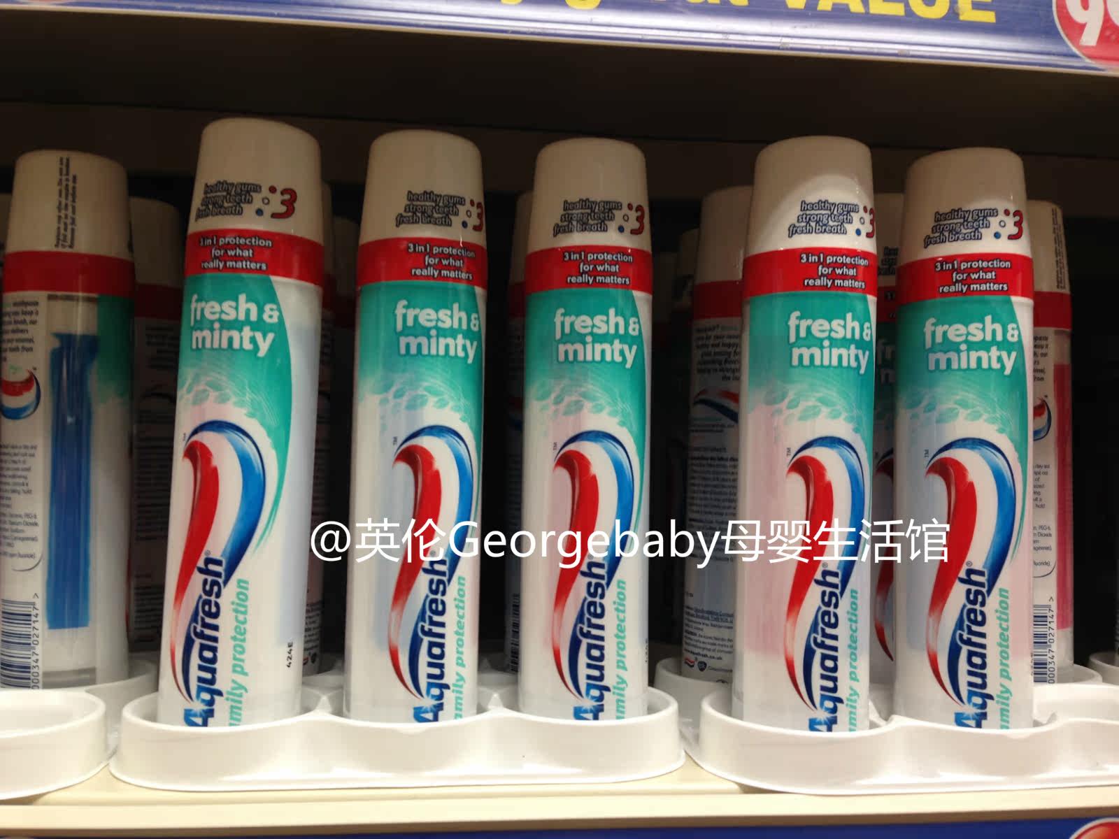 Two British Aquafresh three-dimensional vacuum pressing three-color toothpaste mint fresh 100ml whole family can