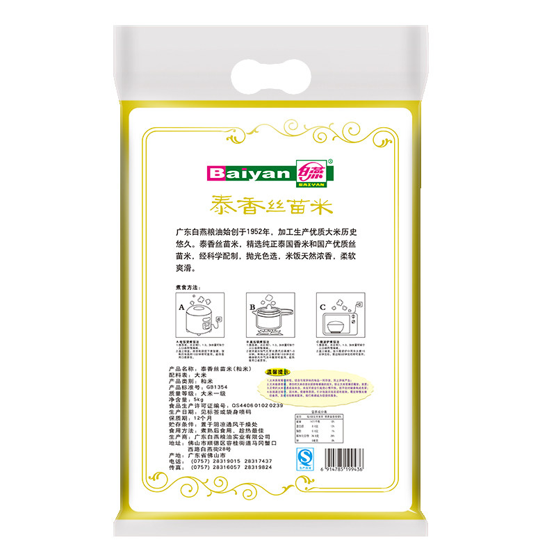 (Baiyan flagship store) oil sticky rice Taixiang rice silk seedling rice 5kg kg Guangdong specialty grain and oil indica rice
