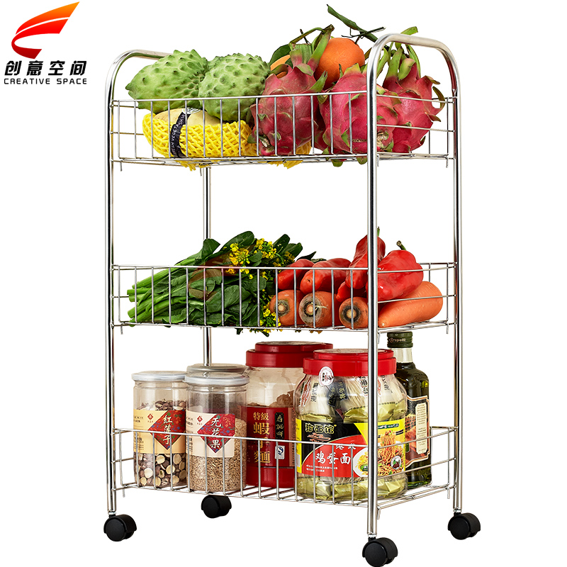 Kitchen rack three-layer stainless steel sundry shelf floor multi-layer vegetable and fruit pot rack storage storage shelf