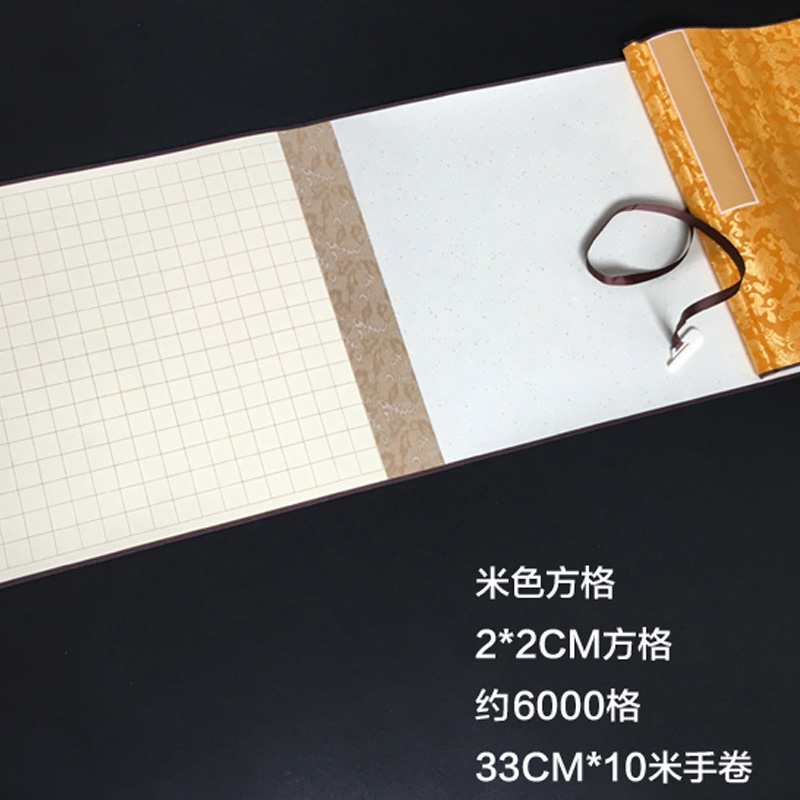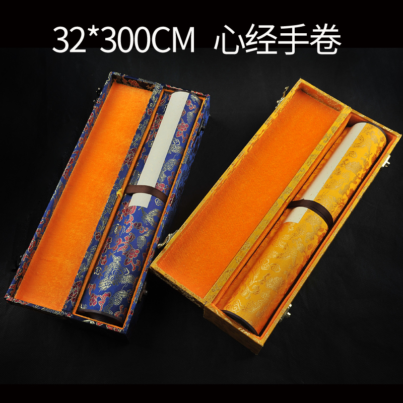 Hand-rolled Heart Sutra Diamond Sutra rice paper long roll copy Heart Sutra mounted scroll Aya mounted small script half-cooked paper squared scroll with box rice paper hand-rolled long scroll calligraphy special Heart Sutra Diamond Sutra paper