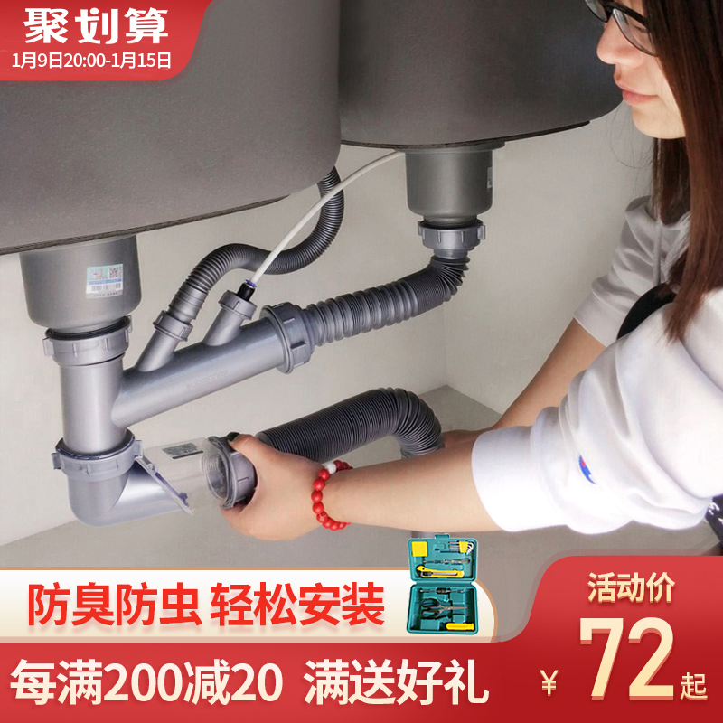 Submarine wash basin sewer fittings kitchen drain pipe dishwash sink sewage set sink sewer set sink sewer
