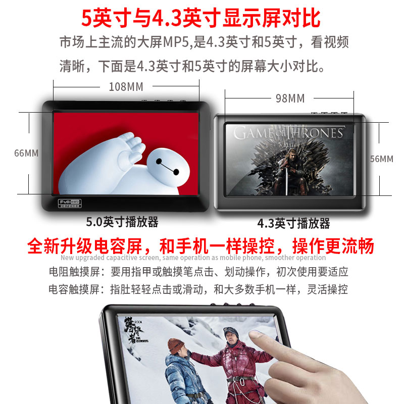 5 inch mp5 Walkman super long standby HD capacitive touch screen mp4 player e-book read mp3