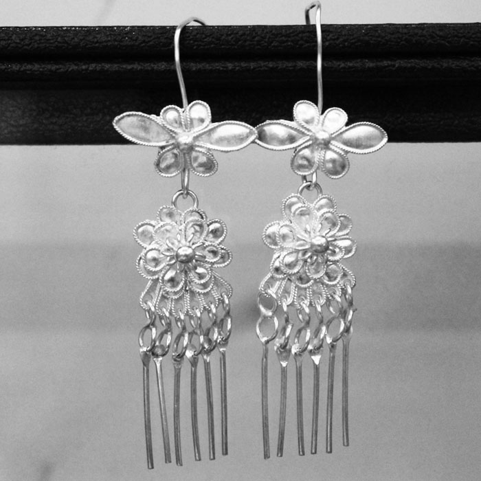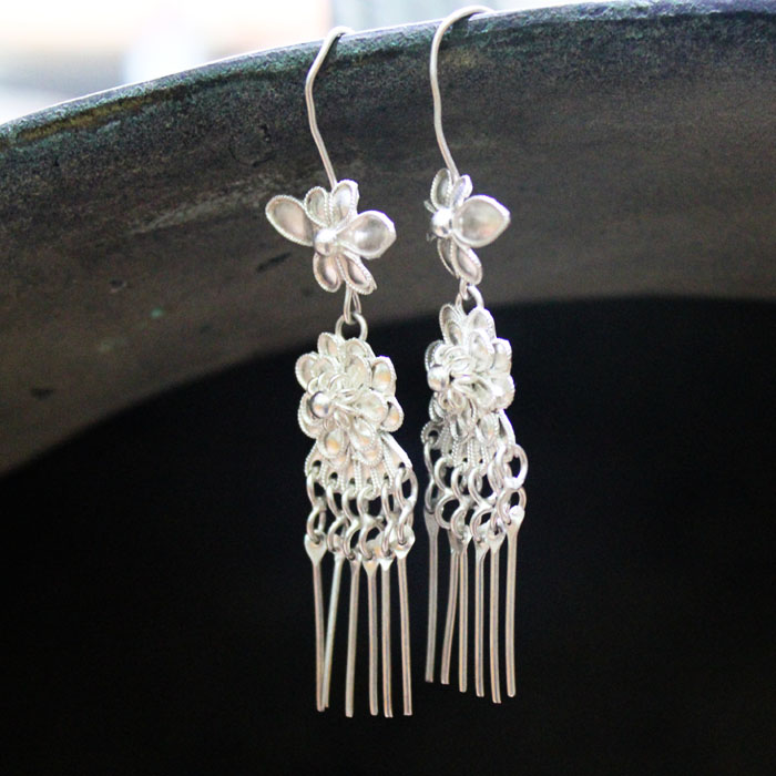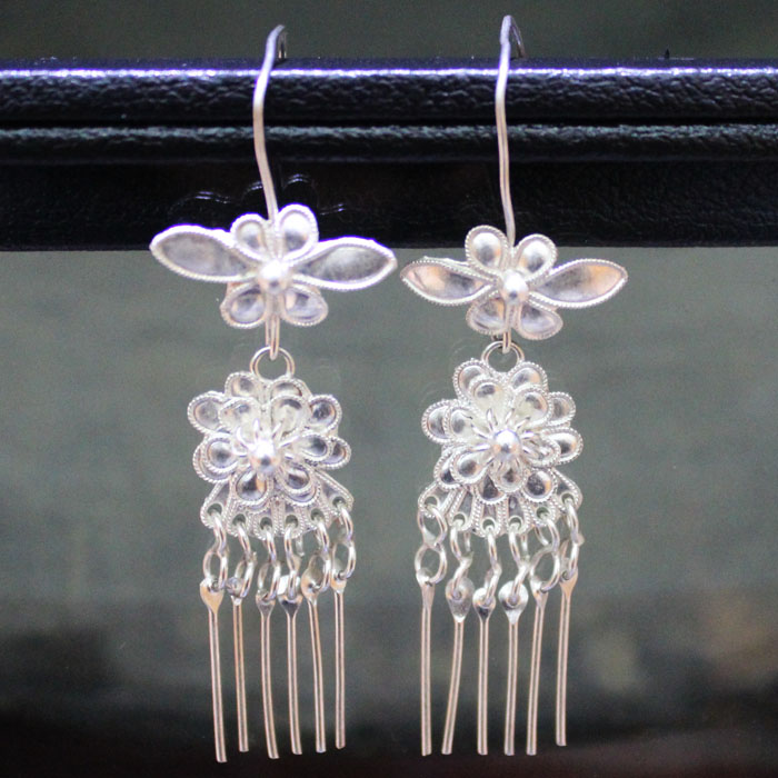 Guizhou Miao Earrings Silver Jewelry Longwu Village Literature And Art Forest Pure Handmade Pure Silver Ear Ring Craft Gift Hem Accessories