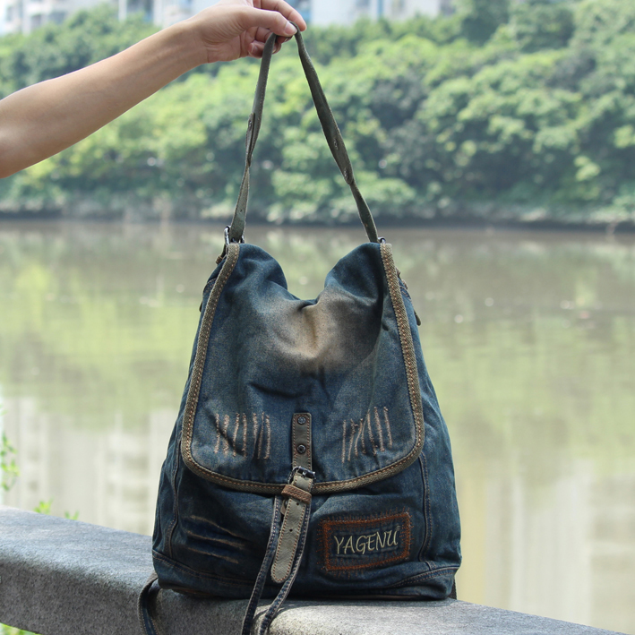 New denim bag women's bag dual-use backpack shoulder bag student school bag Korean version backpack retro casual travel bag