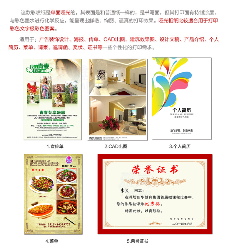 Yalan color inkjet printing paper A4 single-sided matte 130g color inkjet inkjet paper advertising leaflet special paper