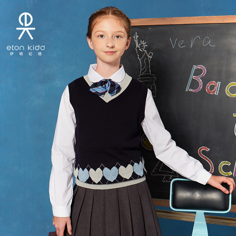 Eaton Gide school dress cotton cotton boys and girls knit vest diangg small middle child all cotton horse 15B 205