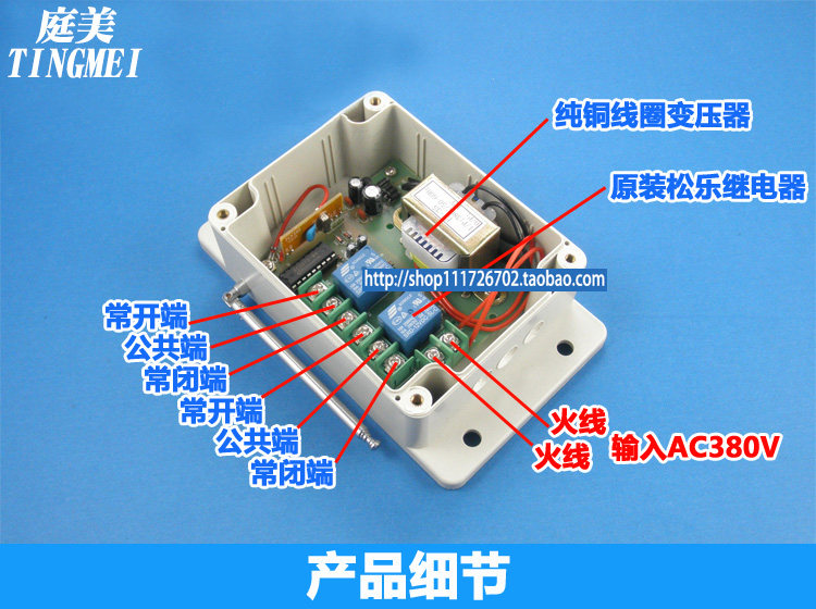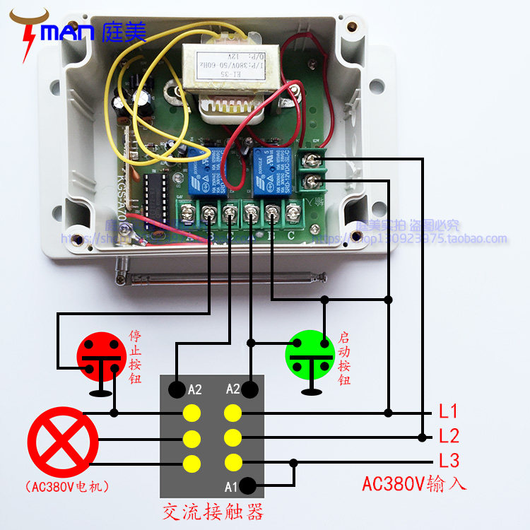 Industrial high power three-phase ventilator motor pumping water pump wireless remote control switch receiver 380V wearing wall learning type