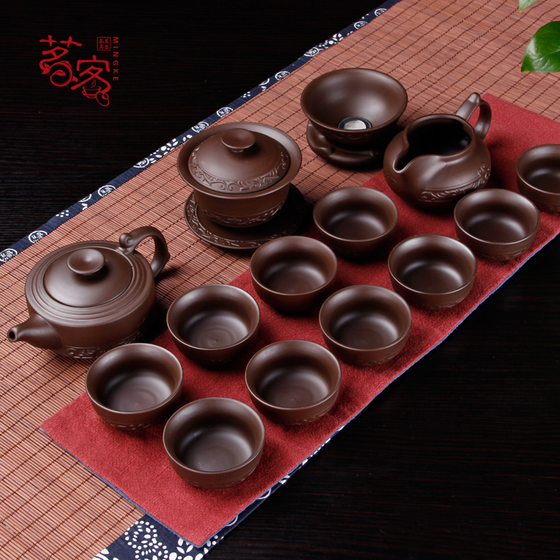 Mingke purple sand tea set set teapot kung fu complete set of household 6 people Chinese retro Yixing tea cup gift box
