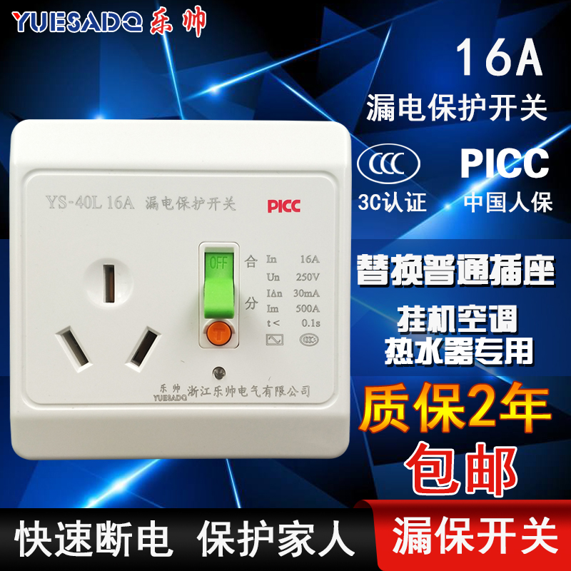 2p Air Conditioning Electric Water Heater Leakage Protector Air Switch 10A 16A Circuit breaker with socket Home Type 86