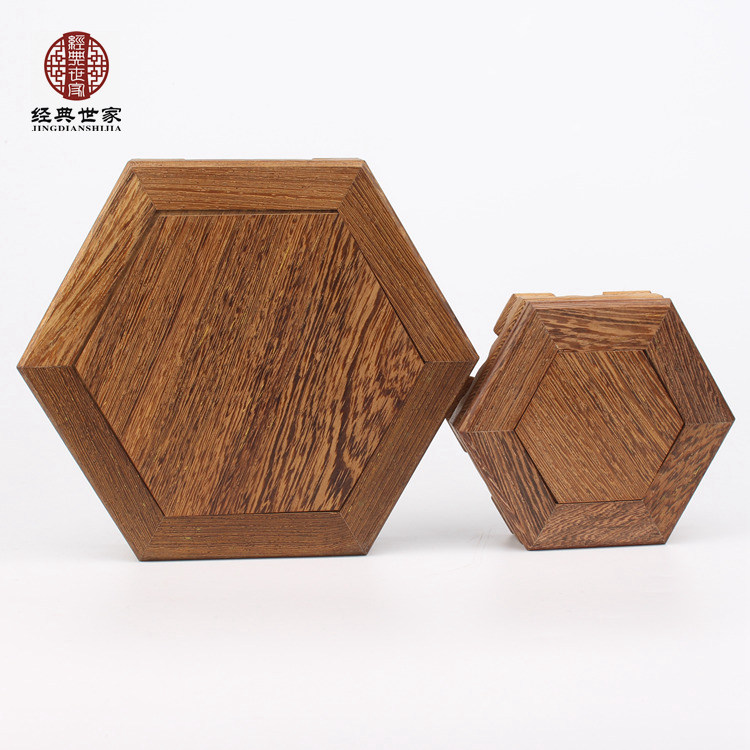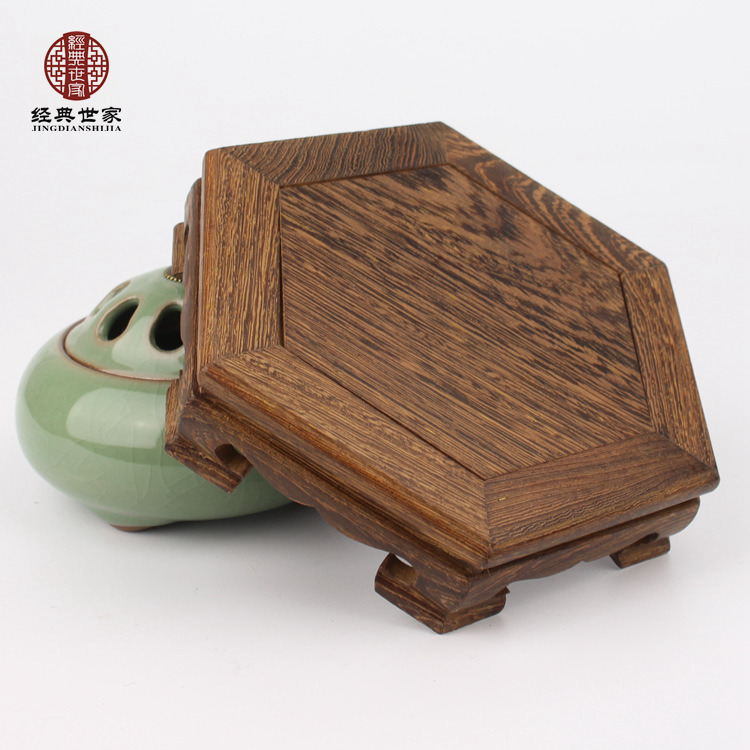 Solid wood Hexagonal Purple Sand Pot Tea Set Base Red Wood Chicken Wings Wood Vase Flowers Bonsai Wood