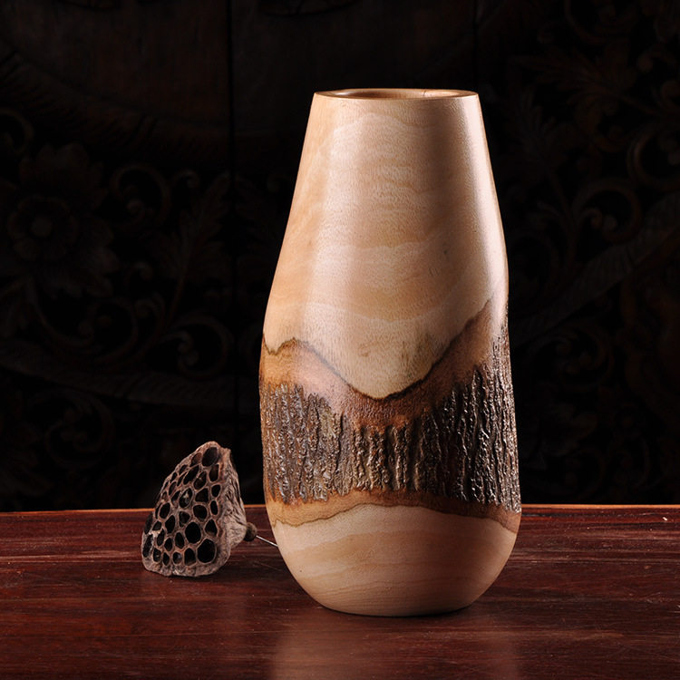 Thai crafts solid wood home decoration retro creative log color vase pastoral style living room decoration vase