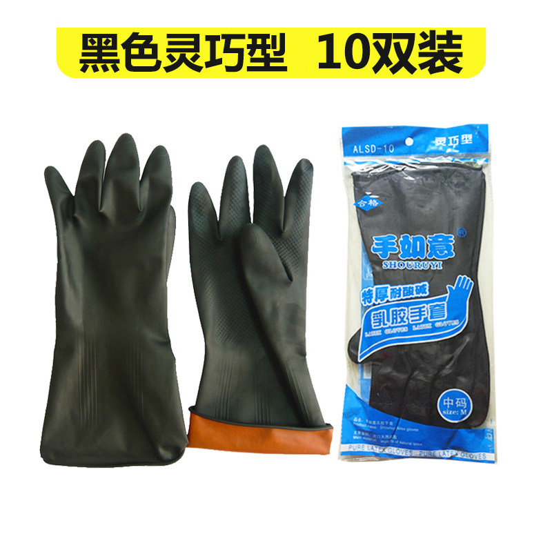 Factory direct sale black palm pattern latex gloves household dishwashing wholesale durable acid and alkali resistant housework gloves