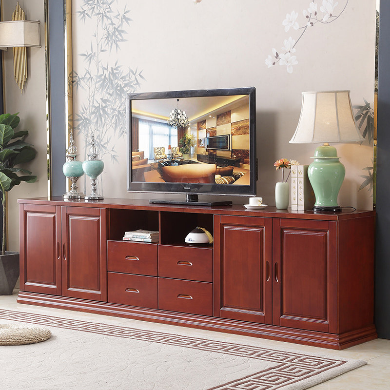 Solid Wood TV Cabinet 2 4 meters 2 2 meters 2 meters 1 8 meters 1 6 meters high living room floor cabinet film and television cabinet background wall cabinet