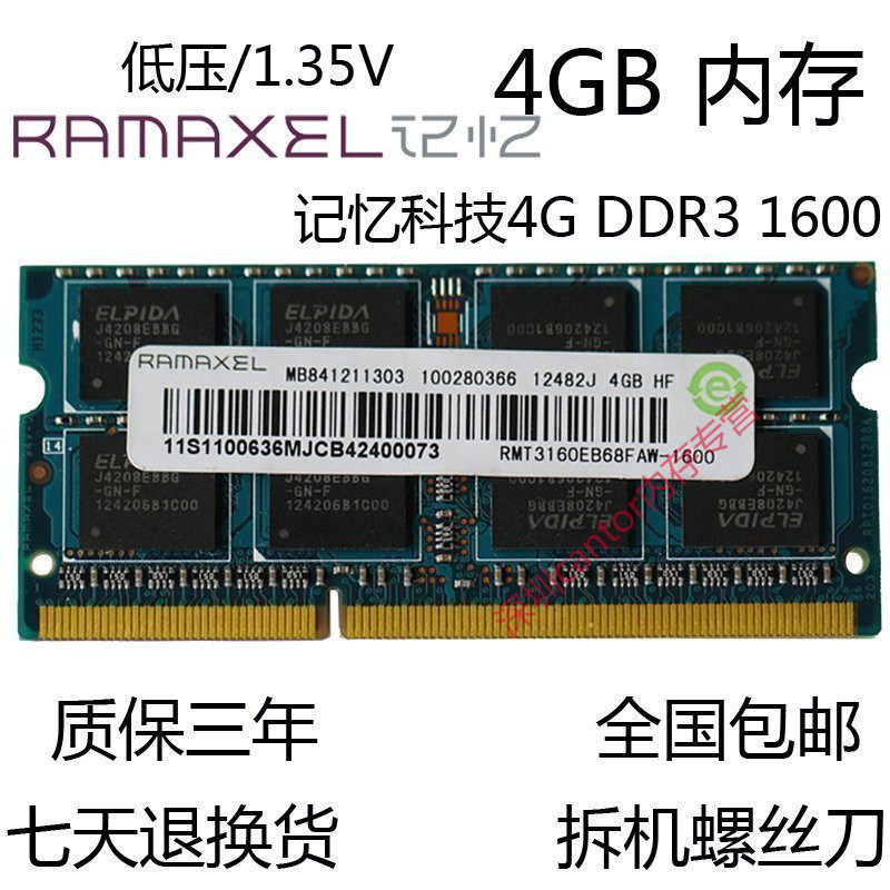 Memory tech 4G 1600 DDR3L 1600 12800 4GB 4GB PC3L laptops memory low pressure 1 35V