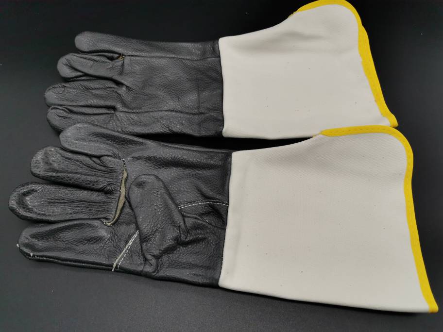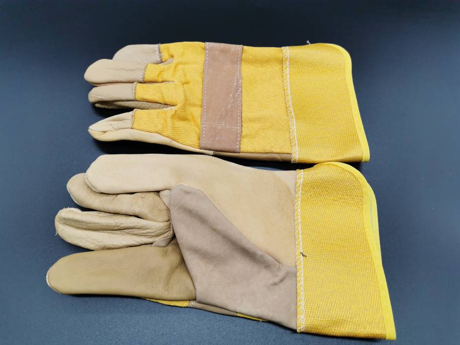 Double-layer canvas gloves 24 yuan a pack of 10 welding gloves short hand support leather hand back yellow cloth 1 pair of gloves length 13 5 cm full fur 1 pair of welding gloves palm full fur hand simple canvas 1 full leather hand