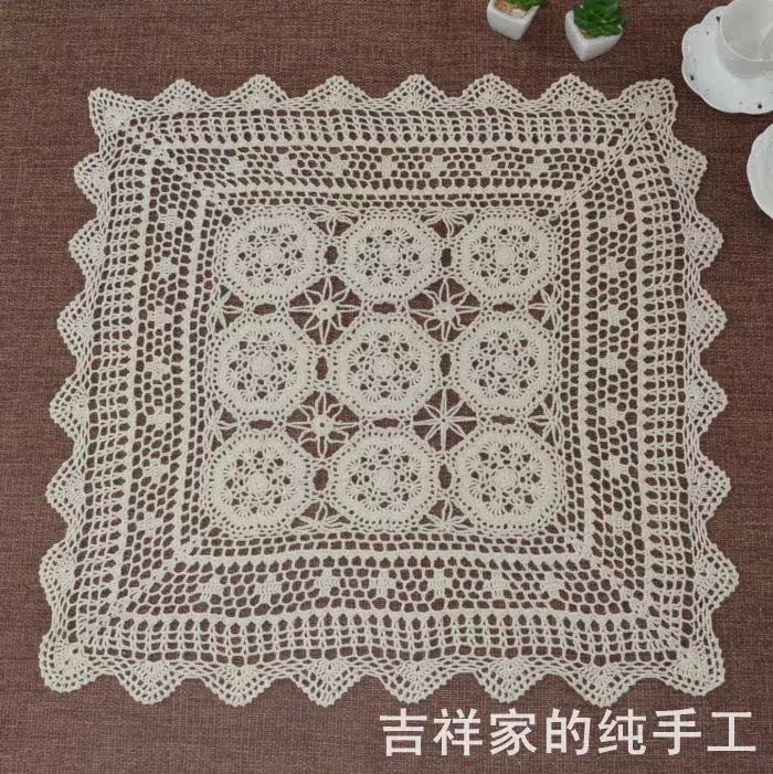 Handcrafted Crochet Hook Flower Sofa Towel Pure Cotton Woven Hollowed-out Cloth Art Table Cloth Universal Cover Towel Rice White 70C Positive Square