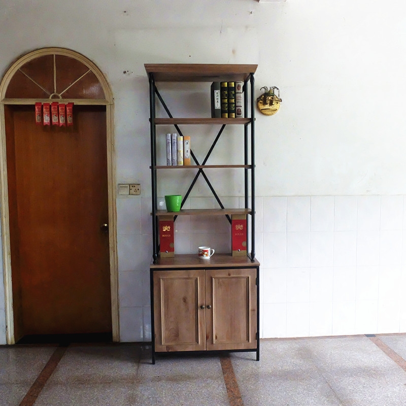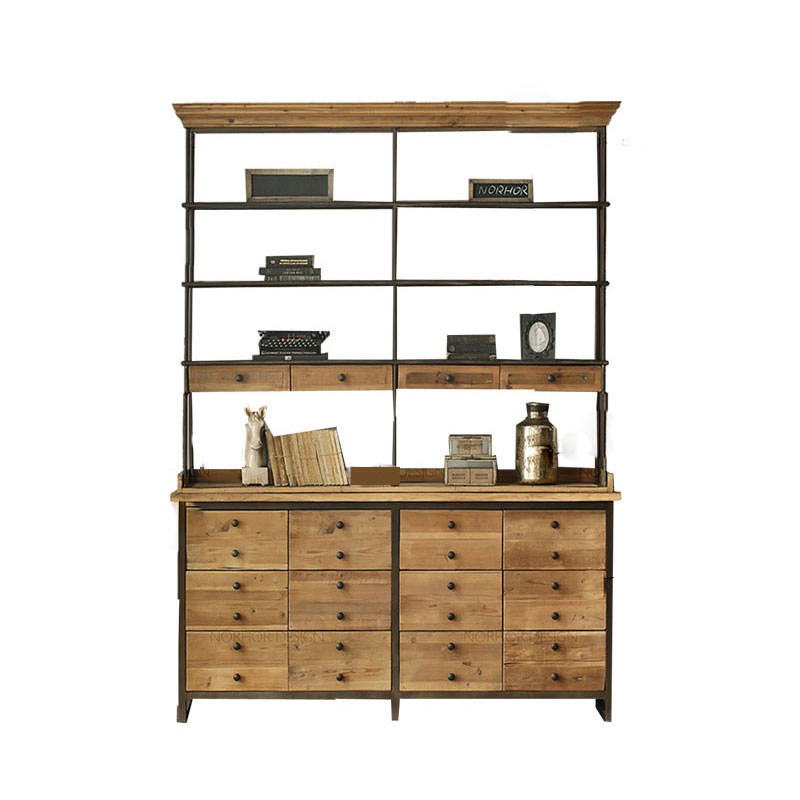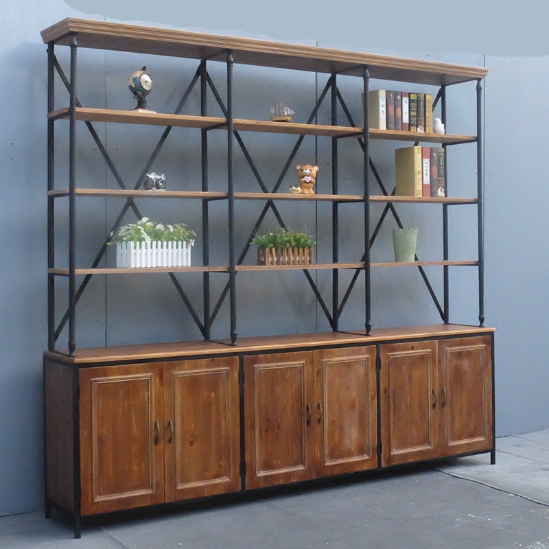 Industrial Wind Retro Iron Art Solid Wood Shelf Bookcase Combination Floor Multilayer Living-room Minimalist Creative Shelf Display Cabinet