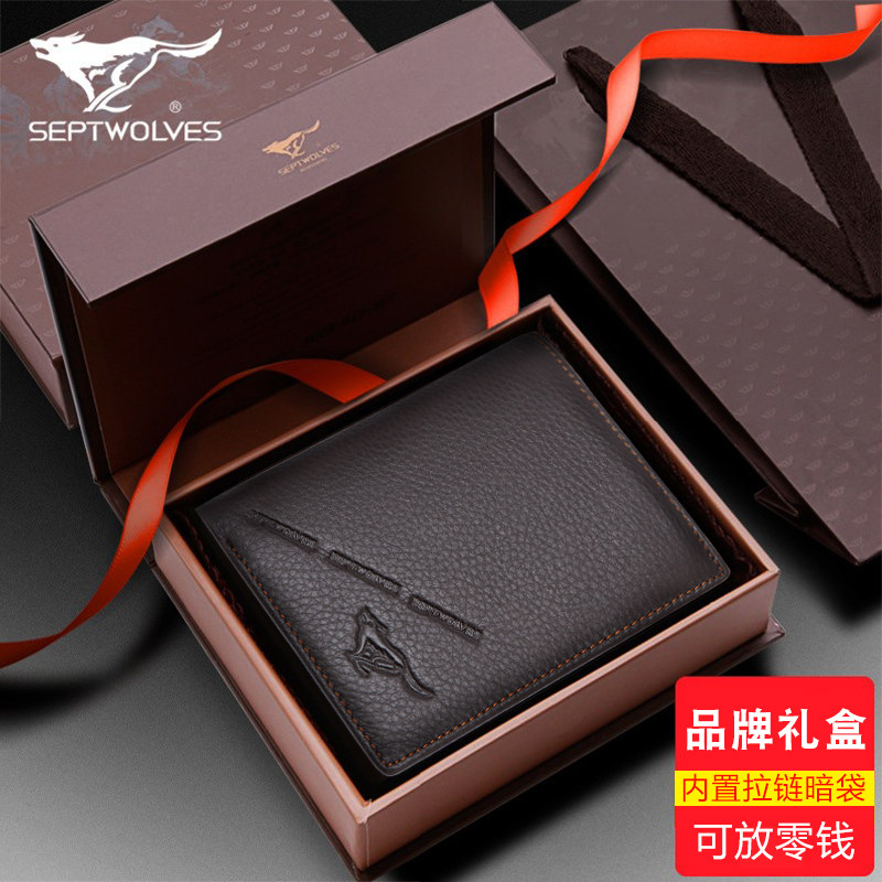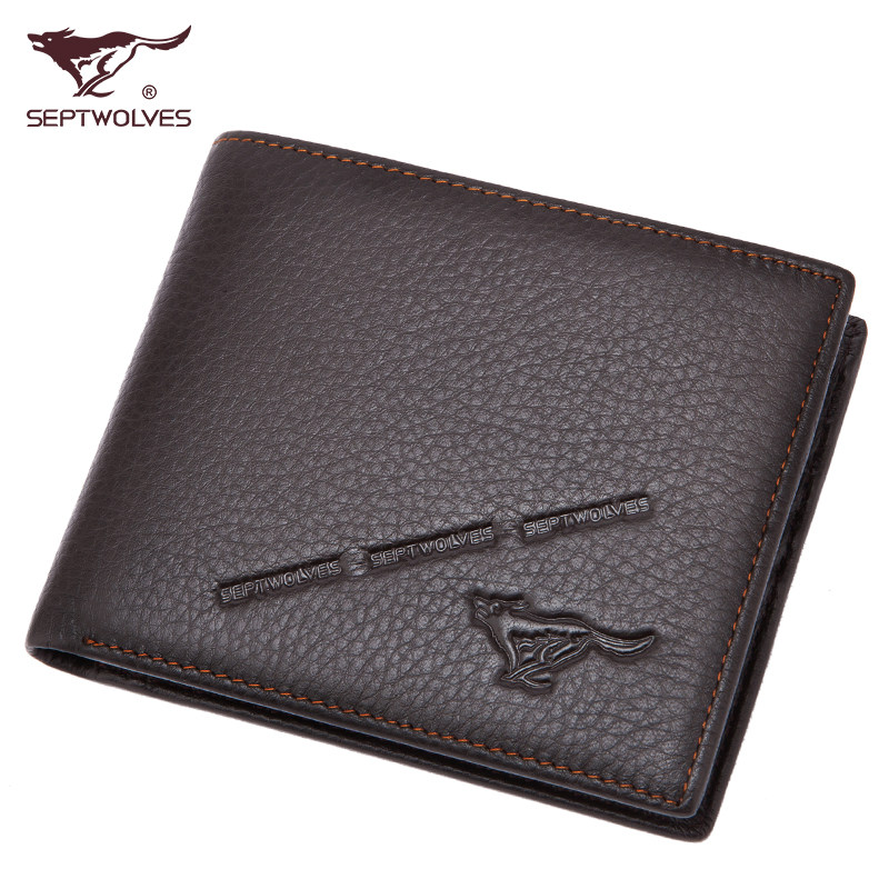 Septwolves men's leather wallet leather coffee color business first layer leather wallet with zipper coin purse