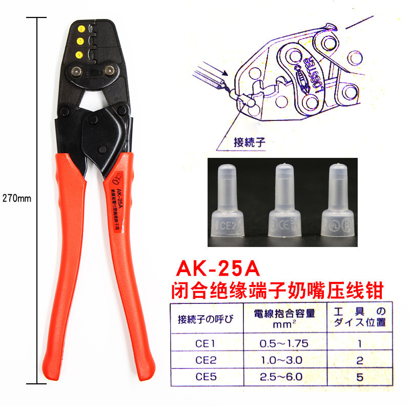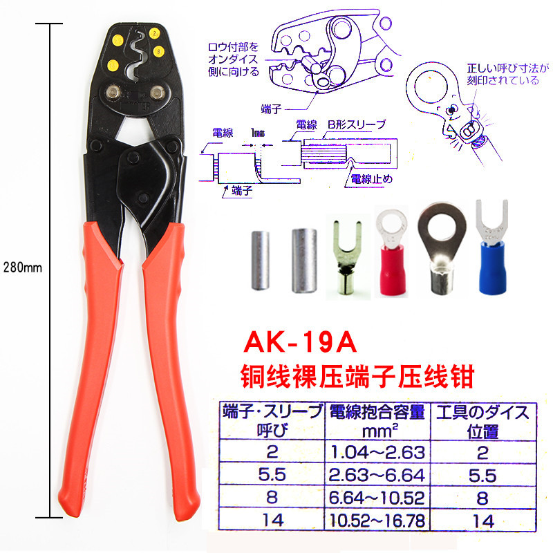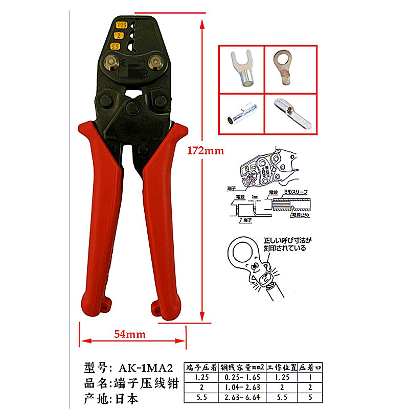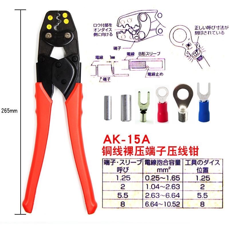 Imported Japanese lobster brand AK-2MA 1MA 15A 19A 25A 38A bare terminal crimping pliers electrical crimping